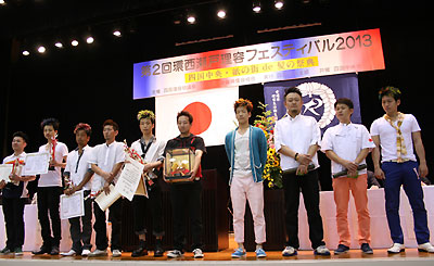 競技終了後、理容2013年メッセージ四国予選、アトラクションと進行し、15時30分からいよいよ表彰式です。